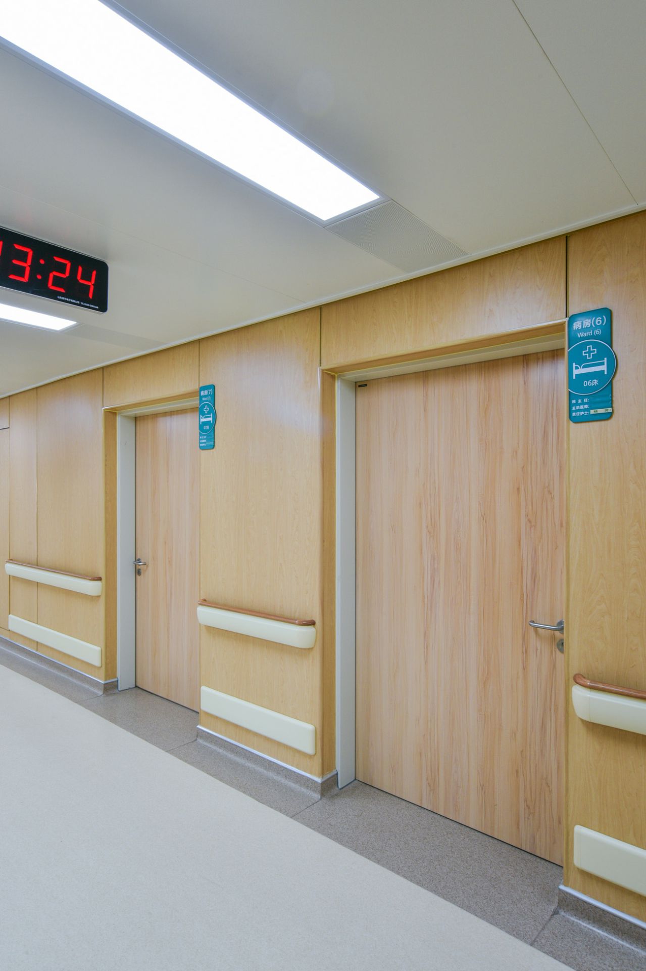 上海皓轩电子商贸解决方案有限公司为山东省立妇产医院新建大楼项目中提供医疗环境整体解决方案,其中包含金属木纹病房门、金属诊疗室门、金属木纹双开门等。打造高品质人性化的医疗空间。