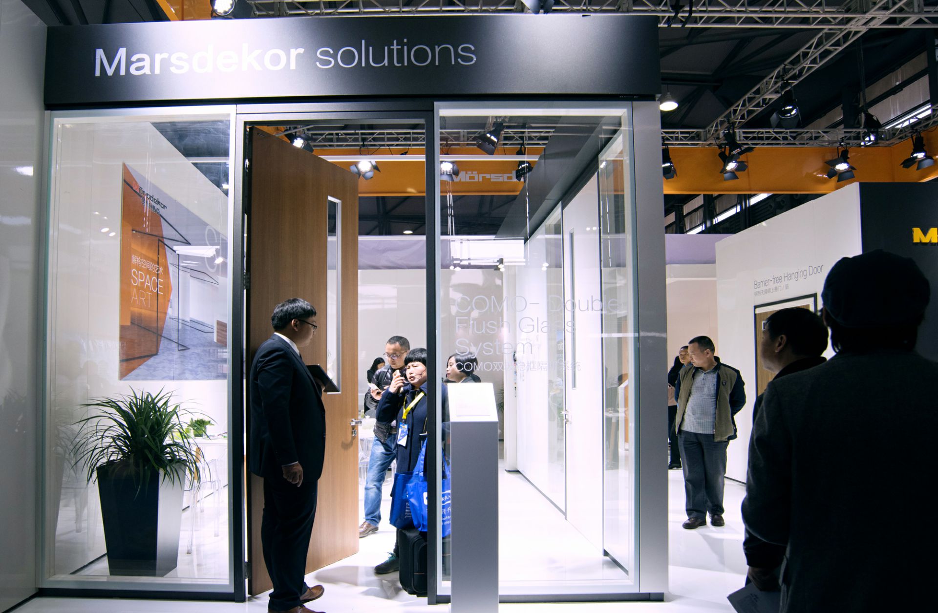 上海皓轩电子商贸解决方案有限公司此次推出的全新商业空间解决方案,展会开幕当天更是大放异彩,COMO双玻隐框隔断系统如水面般平整的表面令你的办公室墙面看起来像一道靓丽的风景。创新的结构使得该系统有着超高的隔音功能。可搭配连续不断的玻璃图案和雾化效果玻璃,可搭配与墙体一样厚的双层玻璃门,令设计的整体性更加完美。
